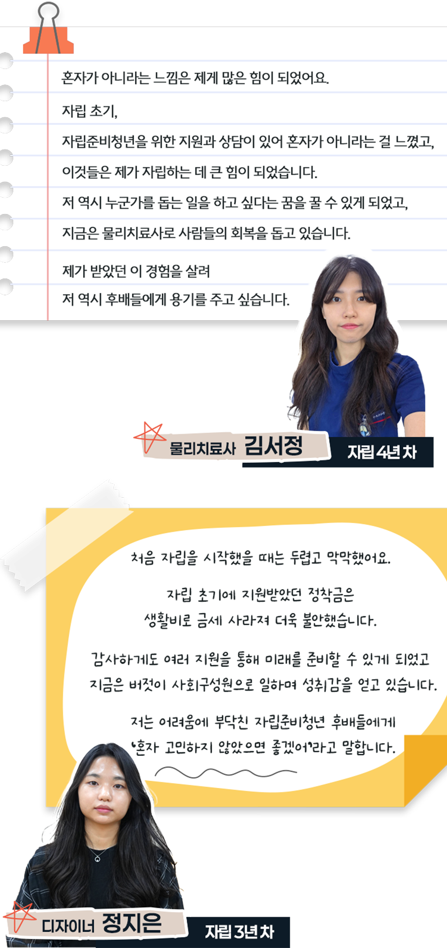 자립준비청년이 가장 필요로 하는 순간에 힘이 됩니다.