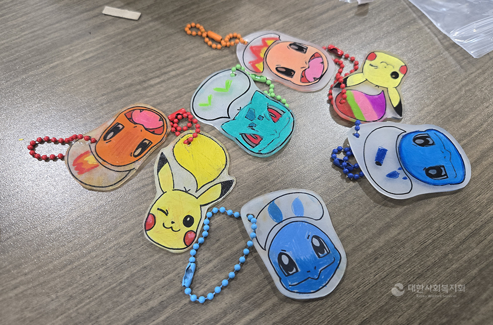 한 아이는 키링을 네 개나 만들어서 실습생에게 "저 이만큼 만들었어요"라며 자랑하는 모습을 보여주기도 하였답니다.