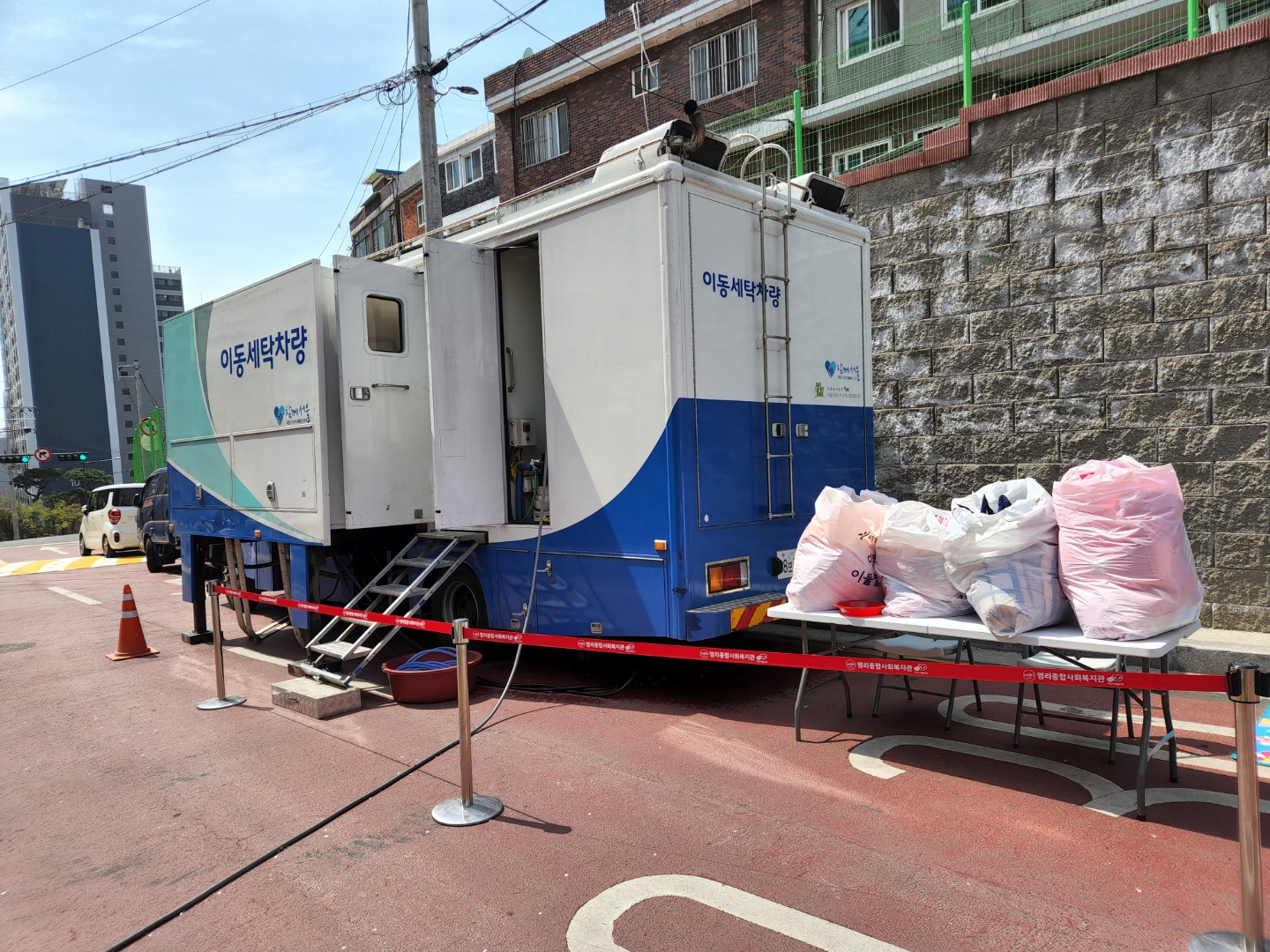 염리종합사회복지관은 남부장애인복지관과 함께 지역 내 저소득 독거어르신 및 장앤인 10가정에 이불빨래 서비스..