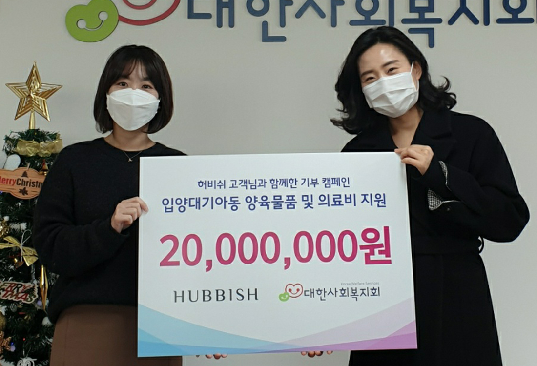 편안함과 아름다움을 추구하는 라운지 웨어 브랜드 ‘허비쉬(HUBBISH)’가 연말을 맞이하여 입양대기아동을 위해 2천만원 후원하였습니다. ..