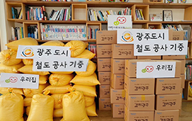 12월 8일, 광주도시철도공사는 쌀 20kg 30포대와 김치 10kg 50박스를 우리집에 후원하였습니..