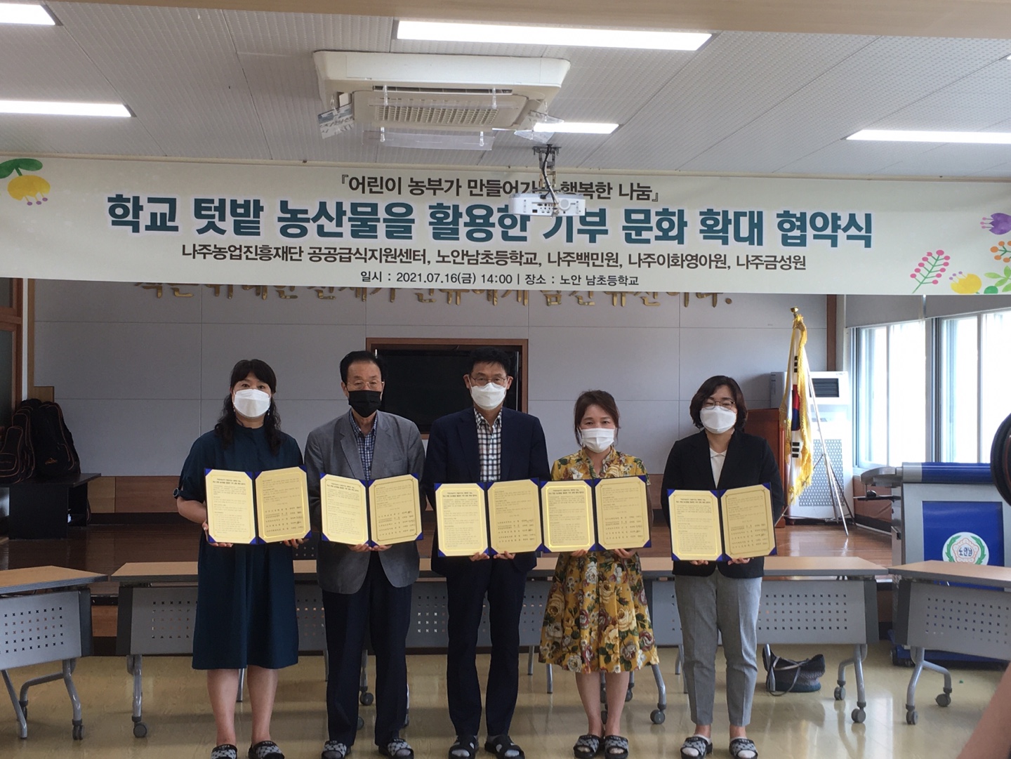 이화영아원은 7월 16일에 농산물 기부문화 확대를 위하여 나주농업진흥재단 공공급식지원센터, 노안남..