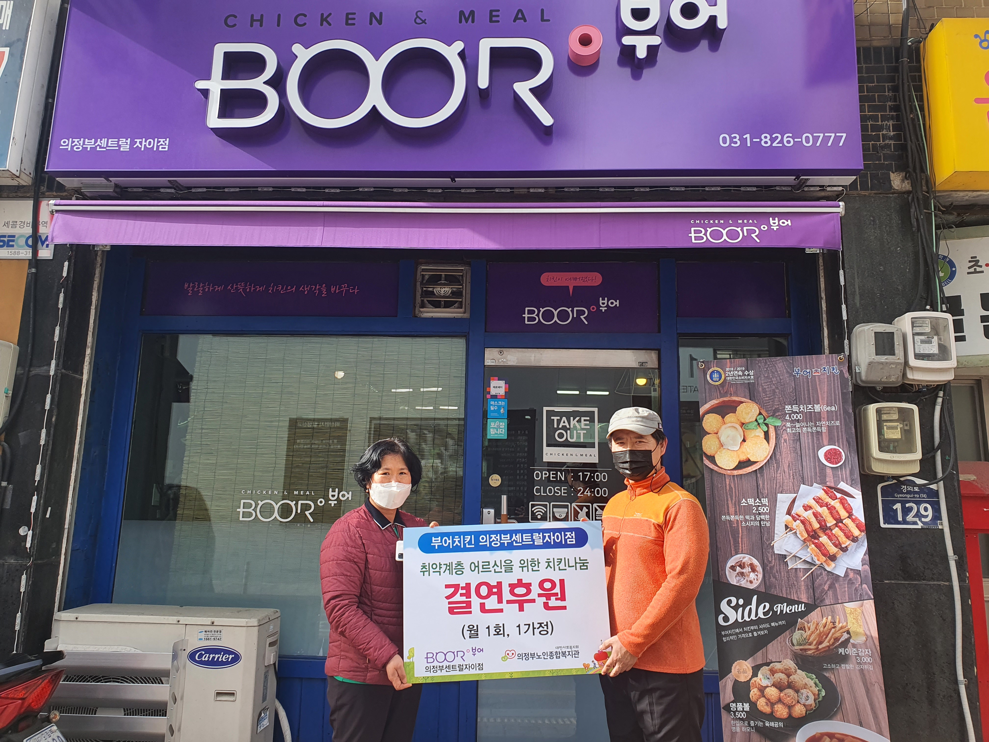 [부어치킨 의정부센트럴자이점, 의정부노인종합복지관과?1:1 결연후원 진행]코로나19 장기화로 어려움을 겪고..