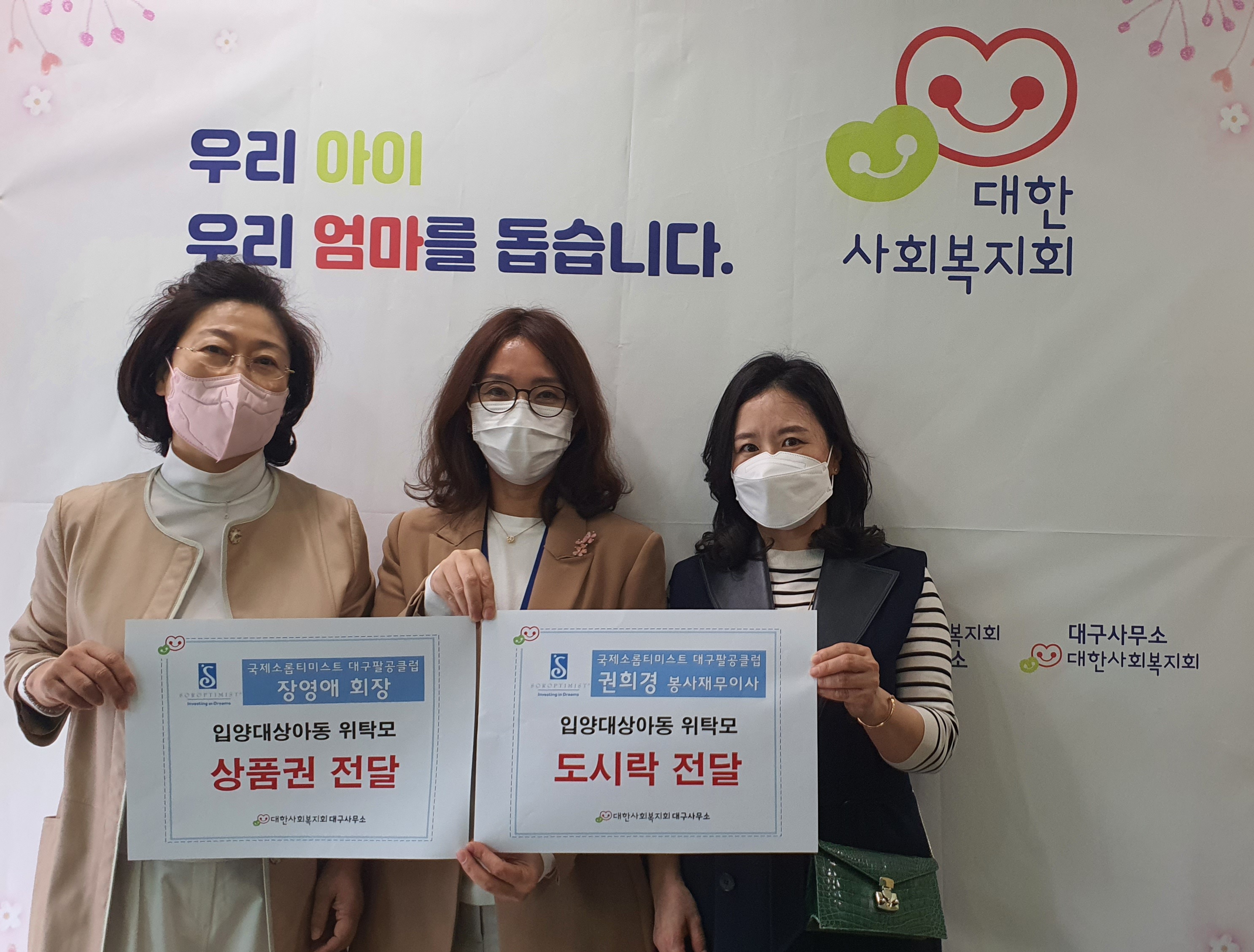 ?? ▲ 위탁모들을 위해 상품권과 도시락을 준비한 국제소롭티미스트 대구팔공클럽의 장영애 회장과 권희경 봉사..