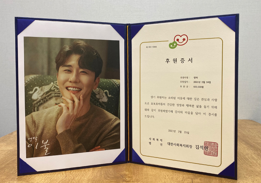 트로트가수 영탁 팬클럽 소모임 탁설기 에서 대한사회복지회 입양대기아동을 위해 후원금 62만원을 기부해주셨습..