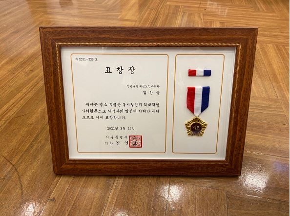 지난 3월 19일 강동구립 해공노인복지관 김한솔 대리와 해공데이케어센터 윤연주 대리는 2021년 노인 복..