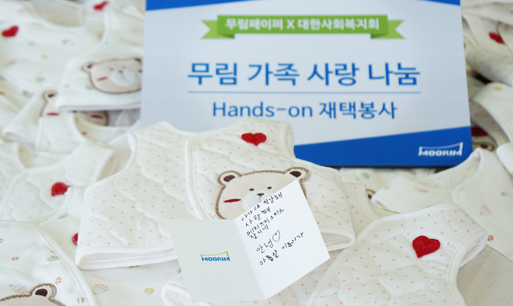 친환경 종이기업 무림페이퍼는 한부모가정 아동을 위한 봉사활동으로 직접 만든 아기 수면조끼를 대한사회복지회에..