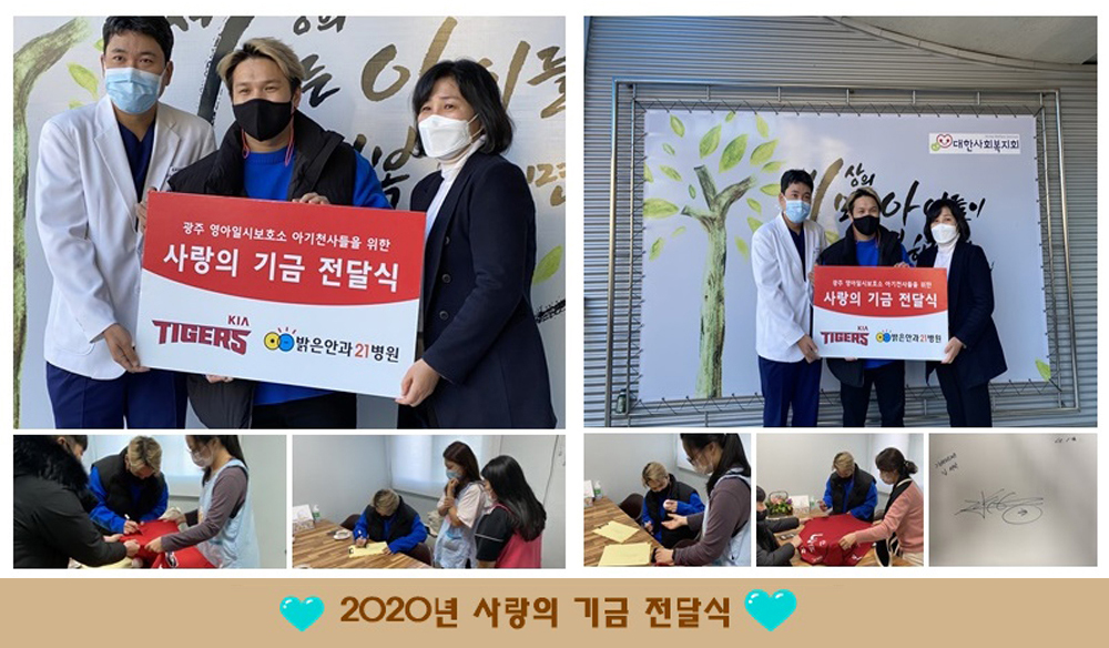 지난 12월 3일 KIA타이거즈 프로 야구단과 밝은안과병원21이 광주영아일시보호소에 행복한 기부를 해주었습니다..