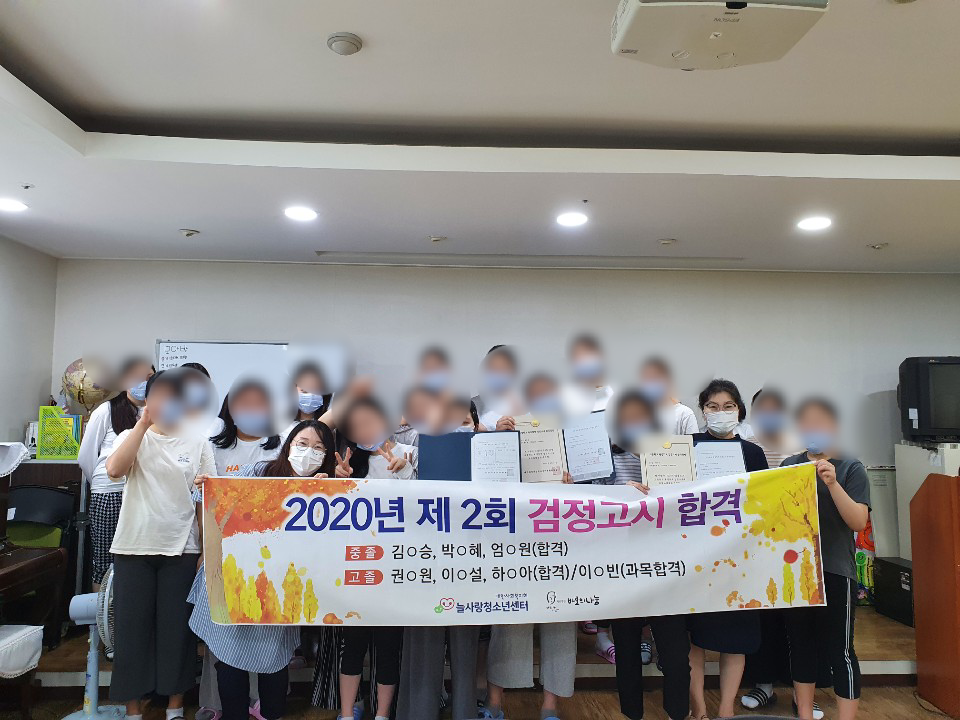 2020년 제2회 검정고시가 8월 22일에 있었습니다. 늘사랑청소년센터에서 중졸 고시 3명, 고졸 고시 4..