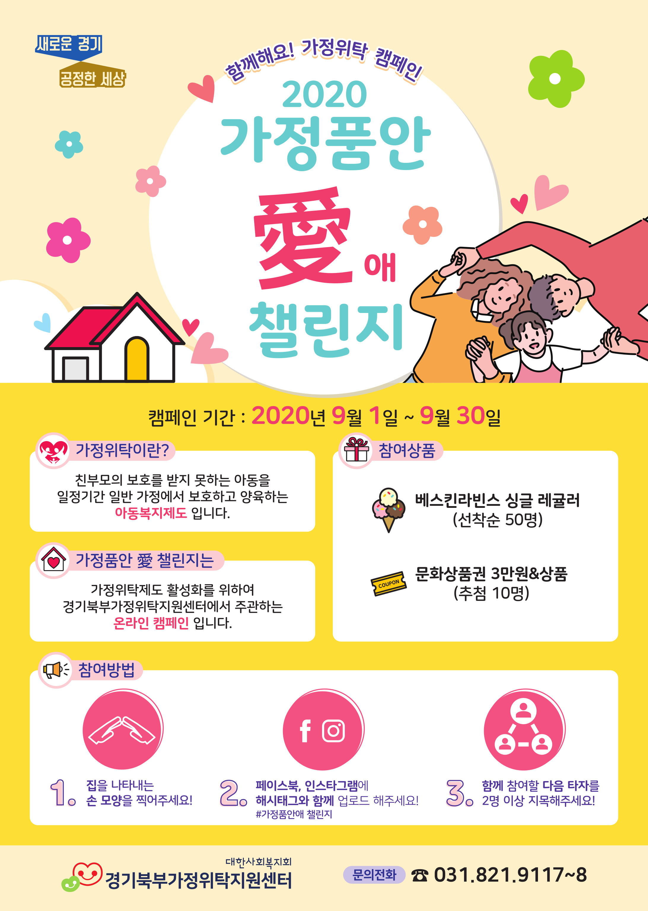 경기북부가정위탁지원센터에서는 가정위탁제도 활성화를 위하여온라인 홍보캠페인 『가정품안愛챌린지』 를 진행합니다..
