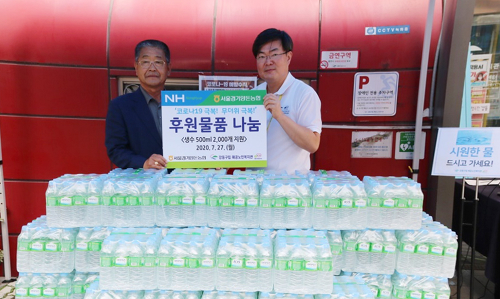 지난 7월 27일 서울경기양돈농협에서 강동구립 해공노인복지관에서 생수 2,000개를 지원해주었습니다.?지원..