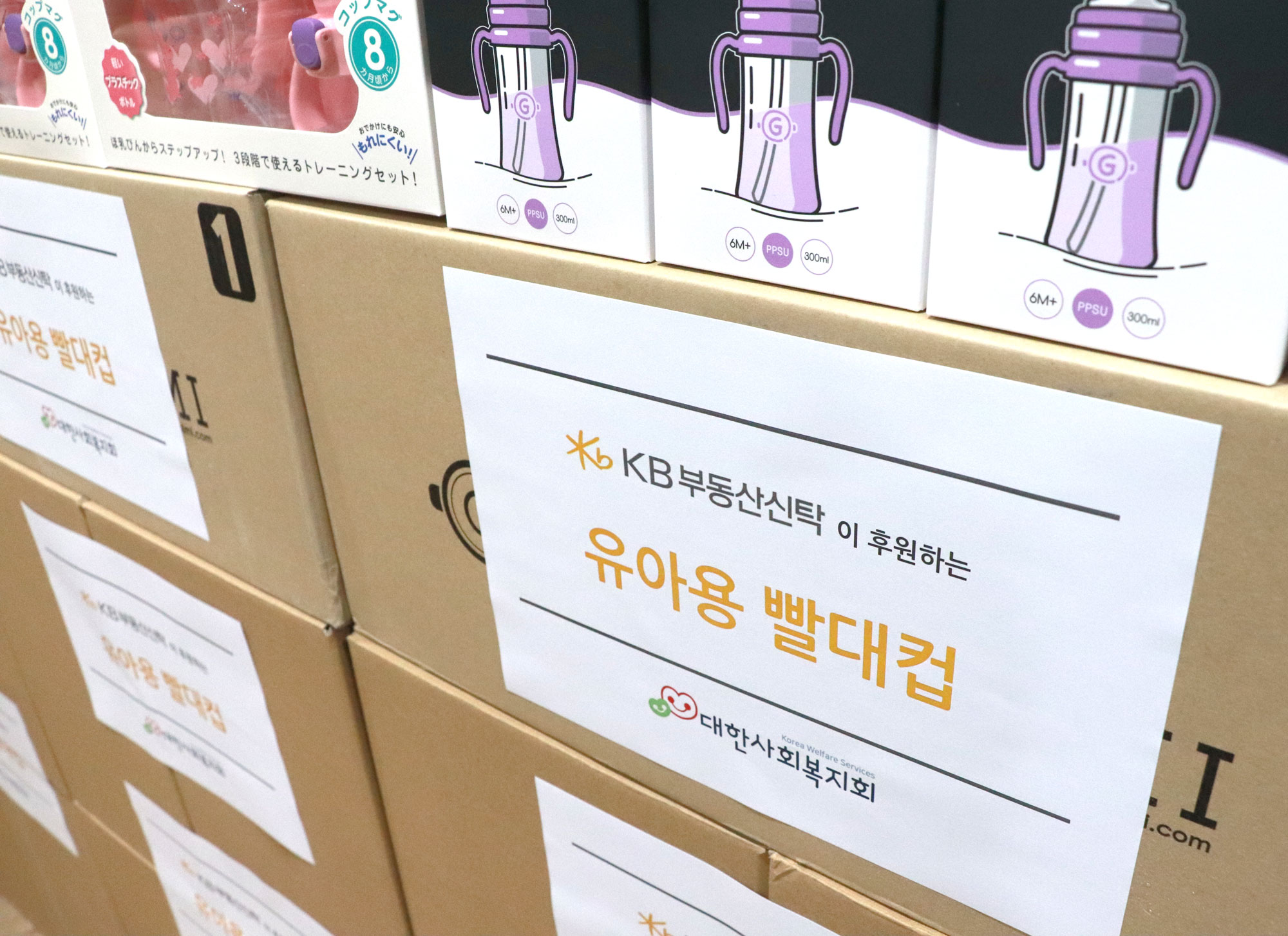 KB부동산신탁에서 5월 가정의 달을 맞아 300만 원 상당의 유아용 빨대컵 133개를 기부해주셨습니다.기부해..