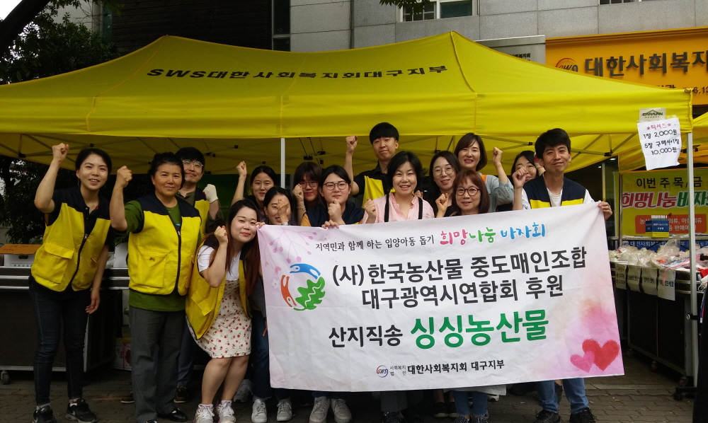 여러 후원업체들의 도움을 받아 열린 희망나눔바자회대한사회복지회 대구지부에서는 미혼모와 입양대상아동들을 돕기위해 한국농산물 중도매인조합 연합회 및 동우씨엠 등 후..