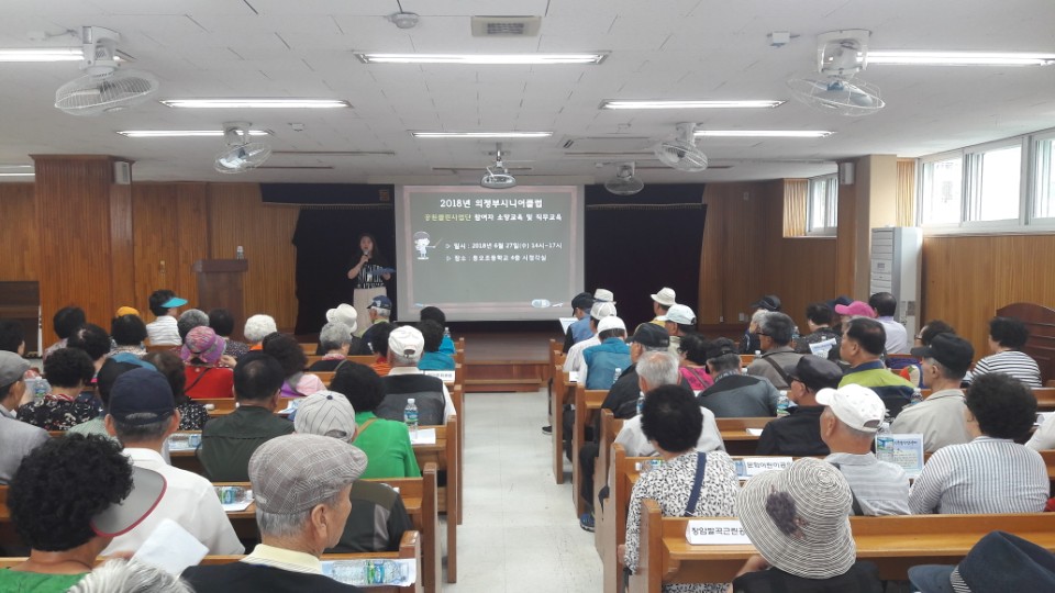 의정부시니어클럽에서는 2018년 상반기 어르신소양교육및 간담회를 6/26~6/29 4일에 걸쳐서 인근 동오초등학교 시청각실에서 진행..