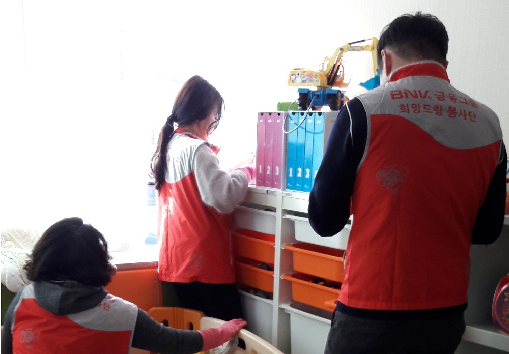 매월 첫 토요일엔 ‘사랑샘’에 ‘부산은행 희망드림봉사단’이 방문하여 사랑샘 생활공간과 주방 청소, 보..