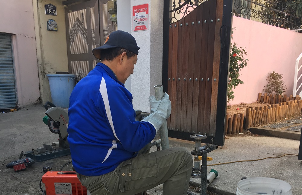심야전기보일러와 LPG 가스를 이용하고 있던 희망샘이 부산광역시 기능보강사업을 통해 도시가스 유입 공사..