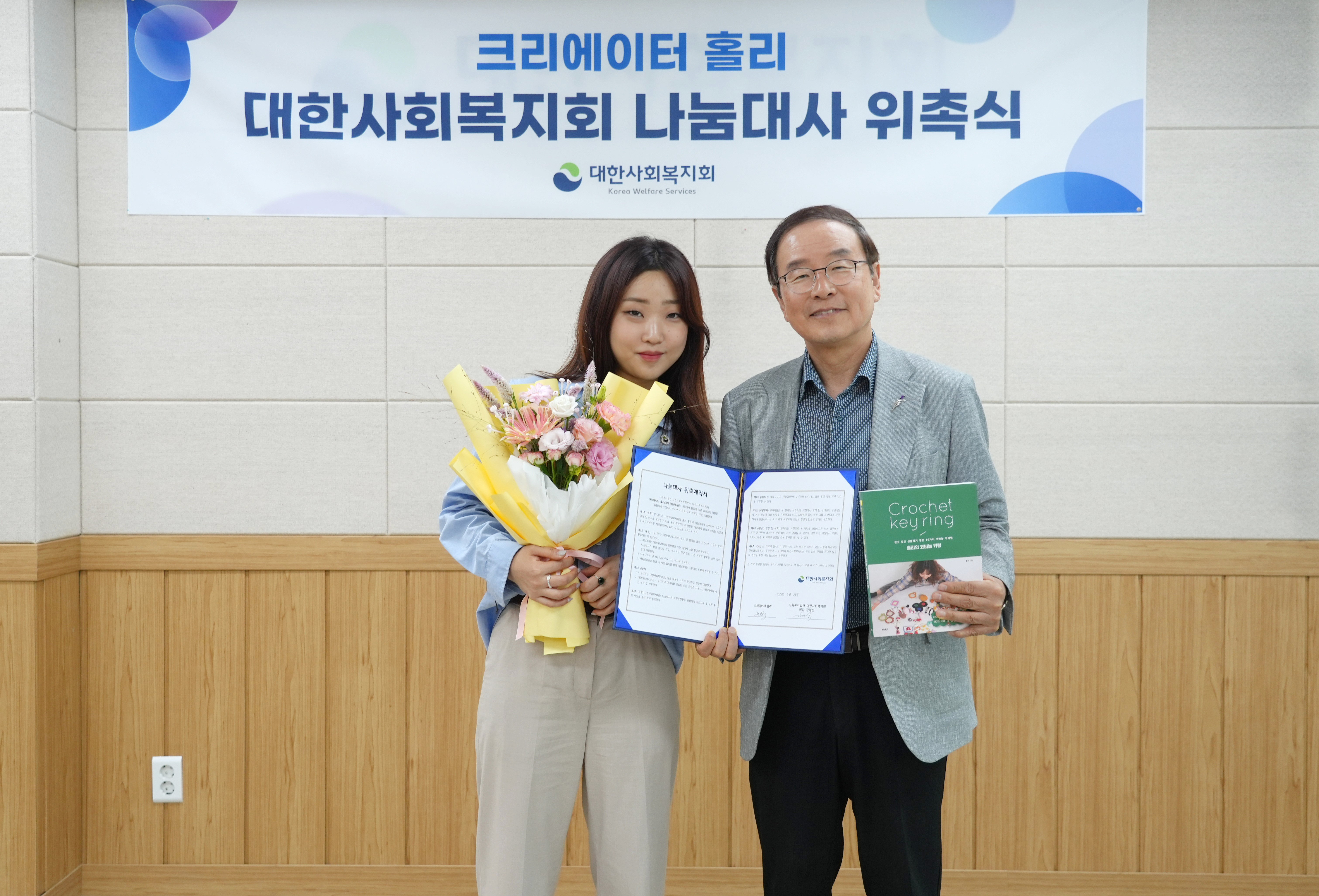 사회복지법인 대한사회복지회(회장 강대성)는 23일 뜨개질 크리에이터 ‘홀리’(본명 홍성애)를 대한사회복지회 나눔대사로 위촉했다고 밝혔다.