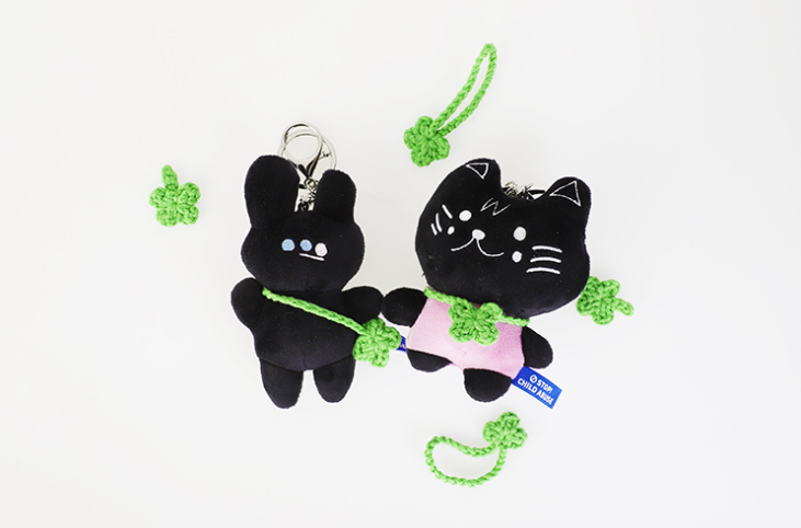 보호시설에서 생활하는 아동들이 ‘나를 웃게 하는 것’을 주제로 직접 그린 그림을 바탕으로, 아이들이 표현한 고양이와 토끼 캐릭터를 블랙 컬러로 재해석해 새로움을 더했다. 이번 키링은 기존 인형 중 가장 많은 사랑을 받았던 ‘야옹이’와 ‘깡총이’를 리뉴얼해 완성도를 높였다.