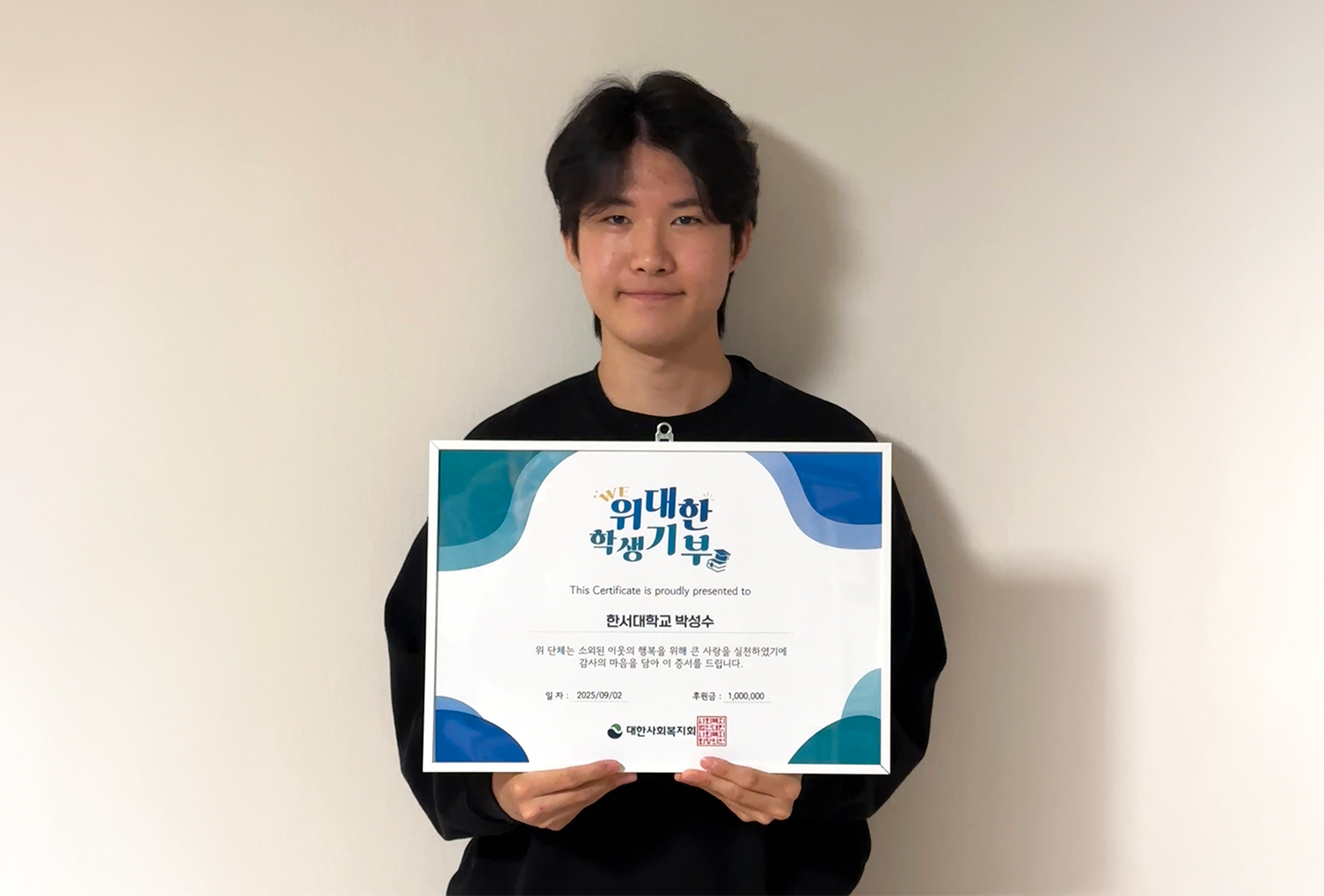 한서대학교 박성수 학생, 장학금 나눔…대한사회복지회 ‘위대한 학생 기부 캠페인’ 동참