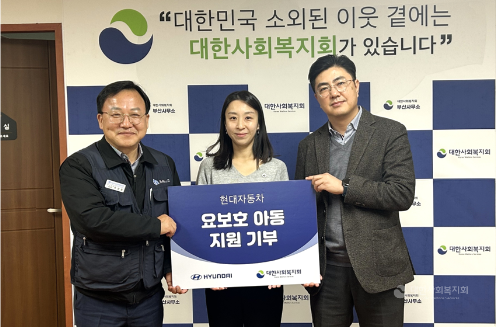 사회복지법인 대한사회복지회(회장 강대성)는 지난 16일 현대자동차 부산지역본부와 현대자동차 노동조합 부산지회가 올해도 연말 나눔을 이어가며 보호가 필요한 아동 지원을 위해 300만 원을 기부했다고 전했다.