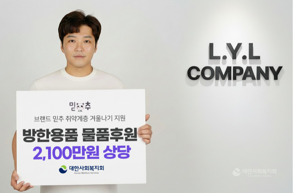 사회복지법인 대한사회복지회(회장 이봉원)는 2월 13일, 엘와이컴퍼니의 대표 브랜드 믿추(대표 안기호)가 국내 취약계층을 위해 2,100만 원 상당의 방한용품을 후원했다고 밝혔다.