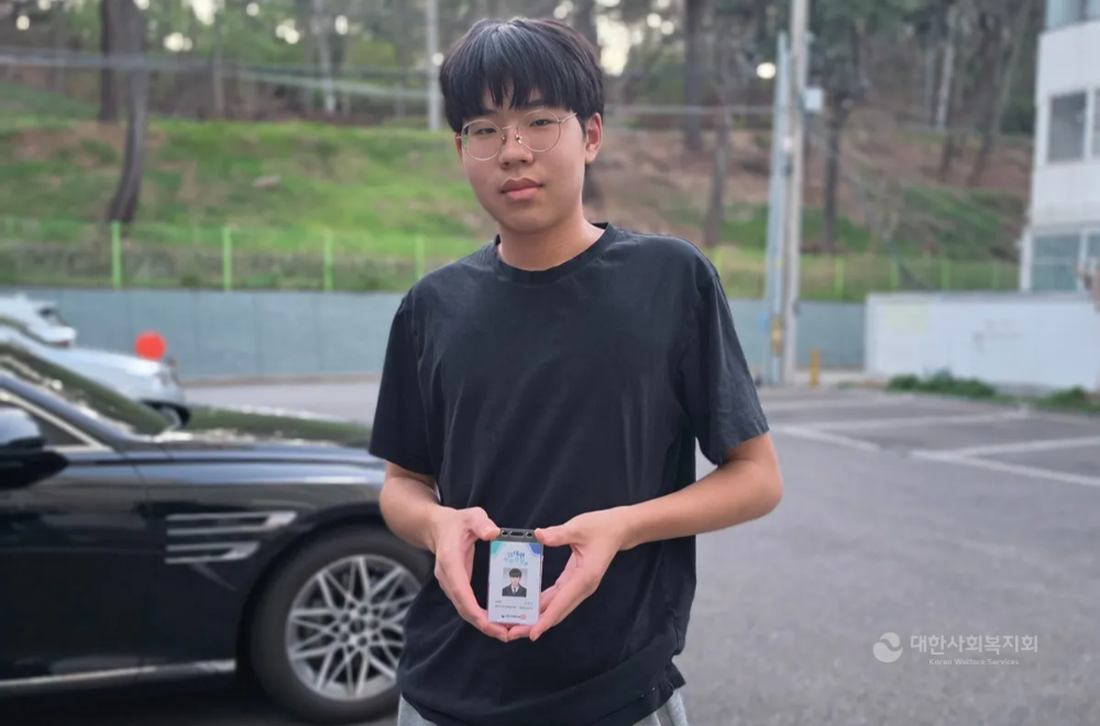 ▲ 대한사회복지회 ‘학생기부증’을 들고 있는 구미전자공업고등학교 1학년 오유건 학생(사진=대한사회복지회 제공)