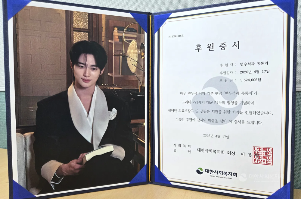 대한사회복지회 이봉원 회장은 “배우를 응원하는 마음이 이웃을 위한 실천으로 확장되며 팬덤 문화의 좋은 본보기가 되고 있다”며 “대한사회복지회는 앞으로도 장애인이 지역사회 안에서 더 자연스럽게 어울리고 다양한 경험을 누릴 수 있도록 세심한 지원을 이어가겠다”고 밝혔다.