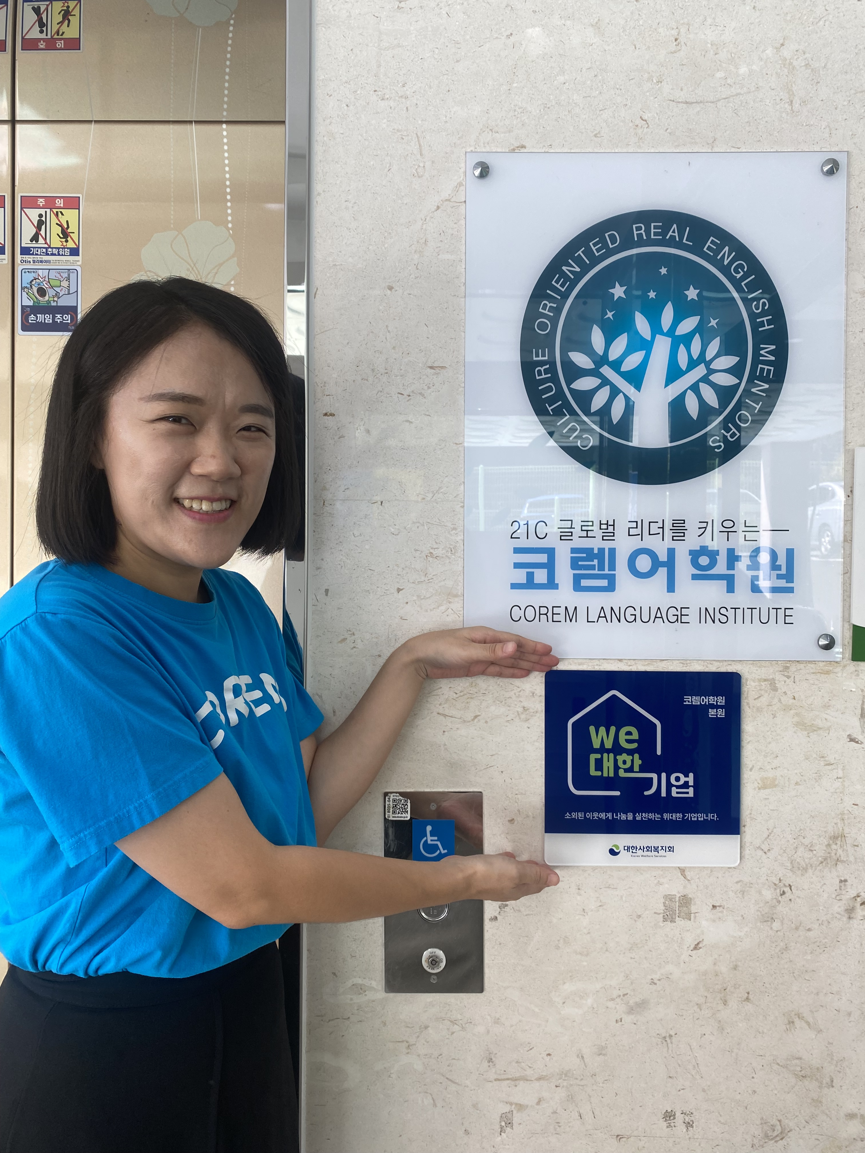 코렘어학원 전안나 대표이사님은 "코렘어학원이 We대한가게 500호로 함께하게 되어 큰 보람을 느낀다며 '존경받는 교육기업이 되자’는 사훈 아래 앞으로도 사회적 책임을 다하고, 이번 나눔이 아이들의 밝은 미래와 행복에 작은 희망이 되길 바란다"라고 가입 소감을 전했습니다.